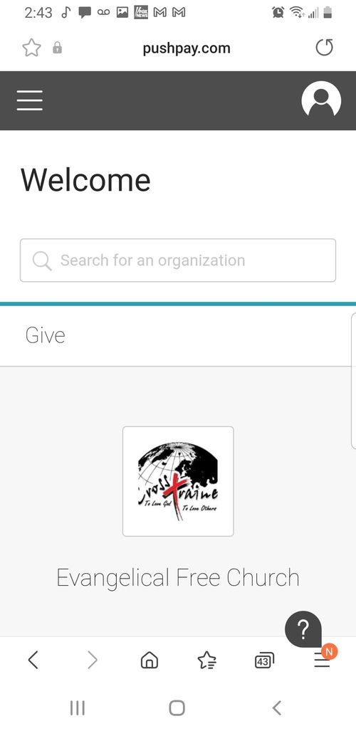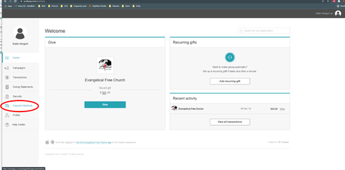 To delete your payment methods, return to the giving dashboard home page. It should look like this.