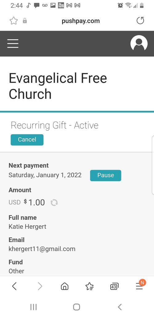 I Currently have a recurring gift through pushpay