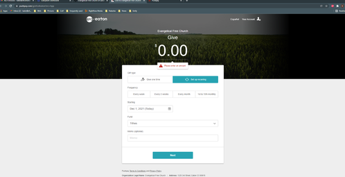 Please select your current online giving status