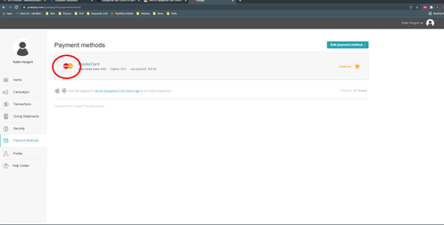 Your page should look like this with all of your saved payment methods listed.