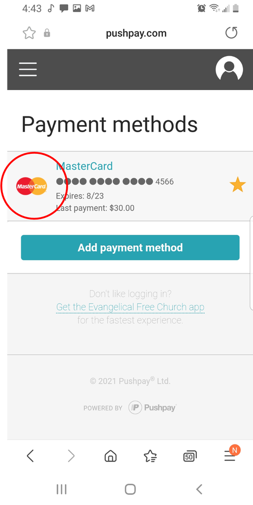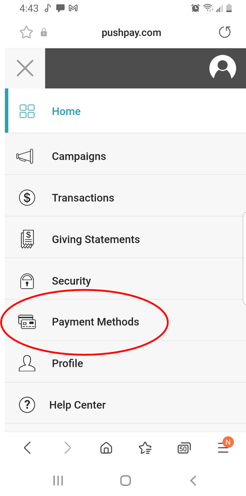 You only need to complete this step if you wish to delete your saved payment methods from Pushpay's system. Our Church account through Pushpay will be closed/deleted 2/28/2022.
