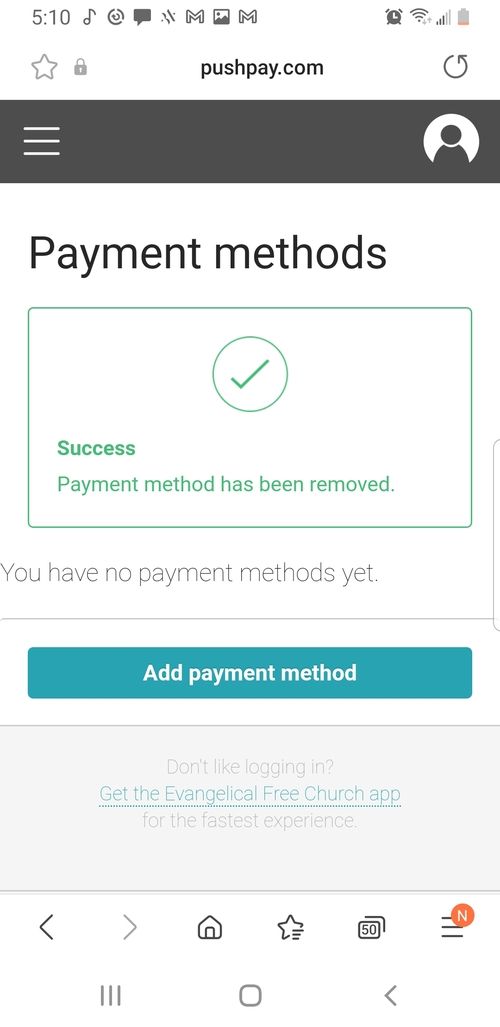If you see this, you have successfully deleted your saved payment method.